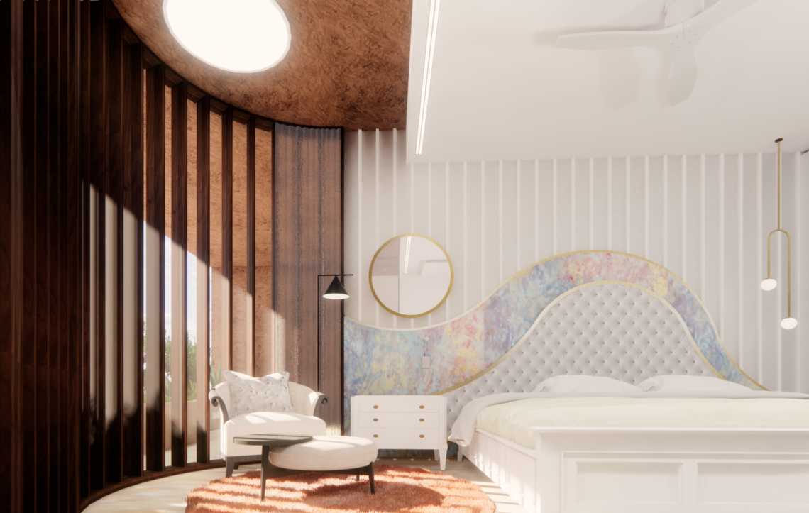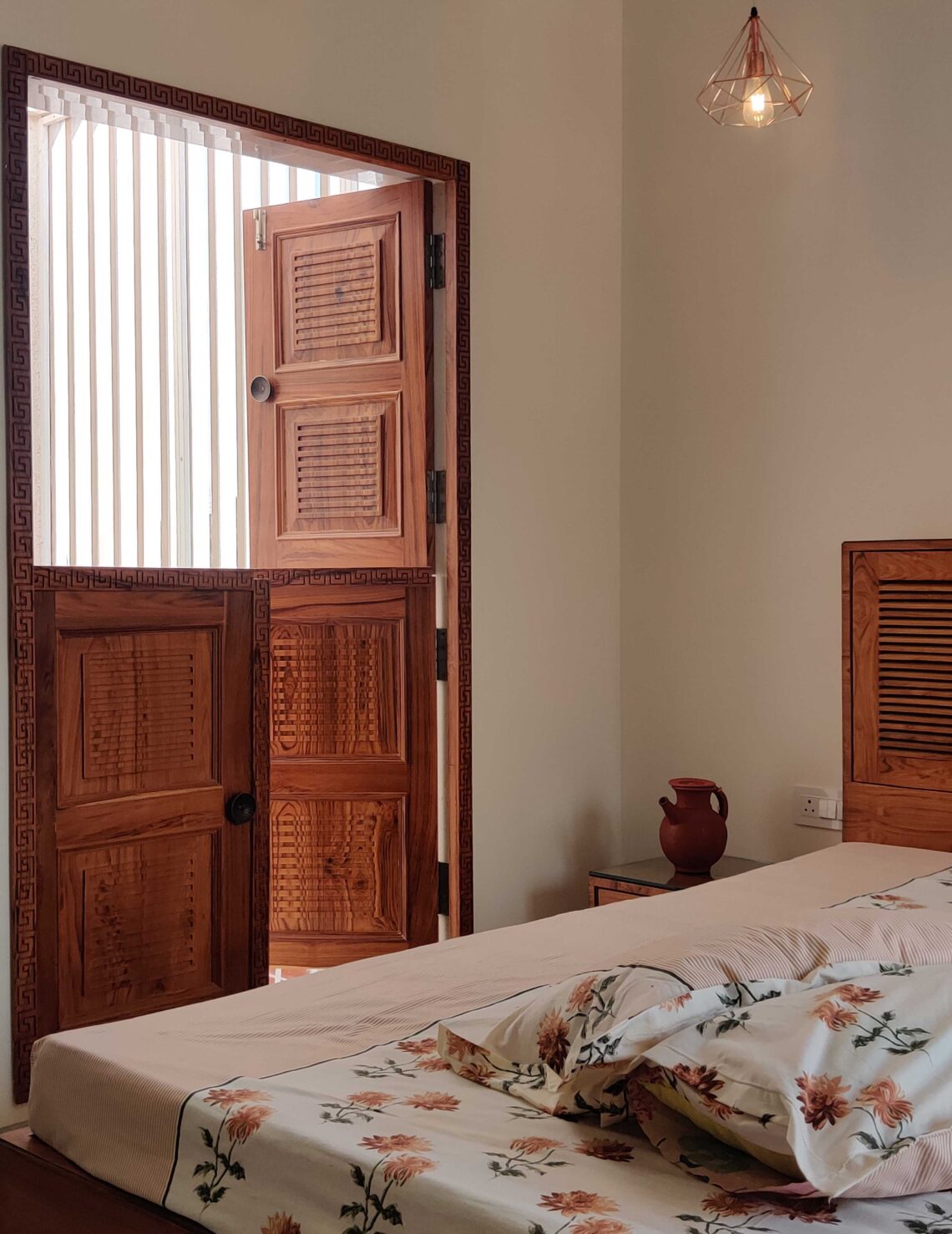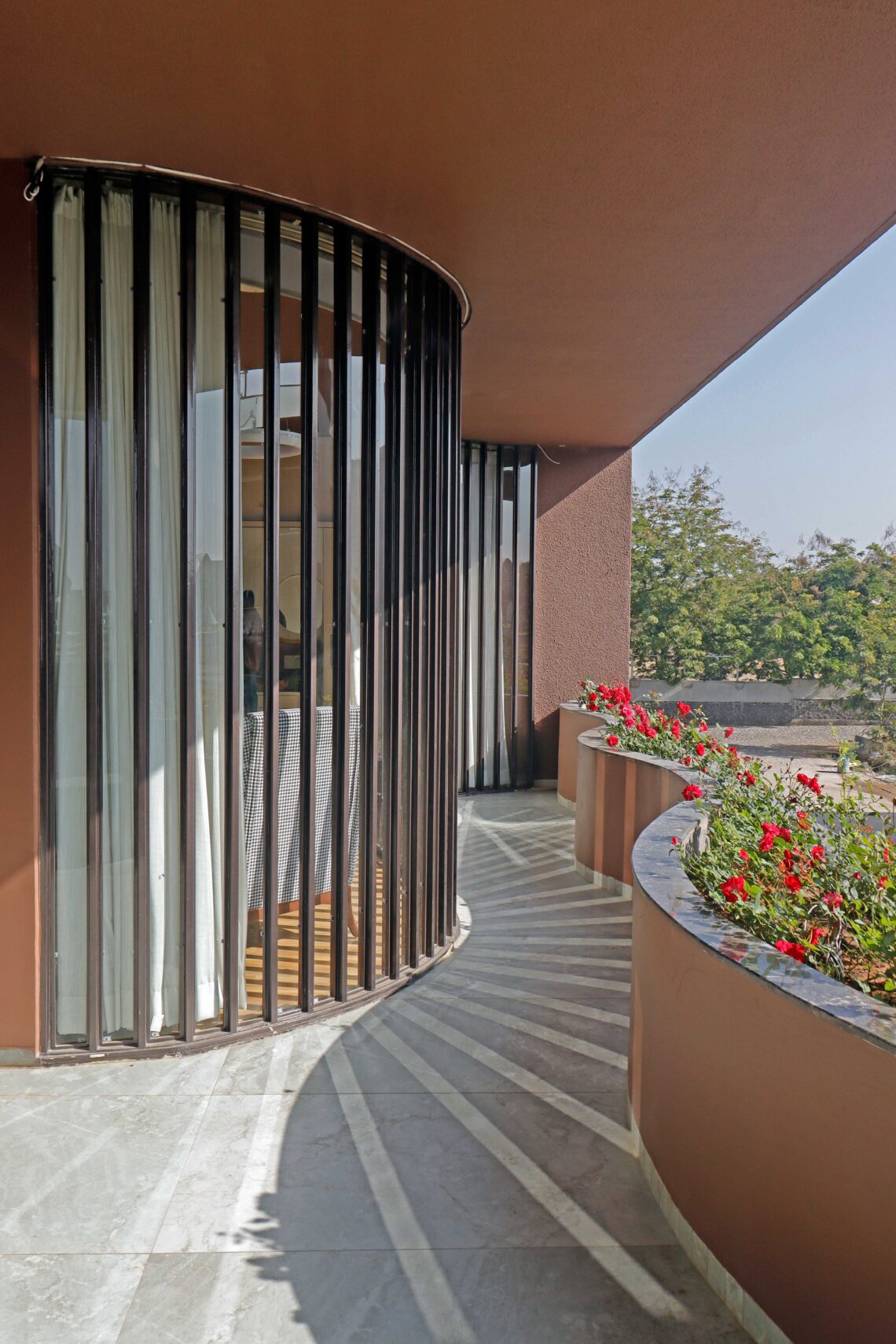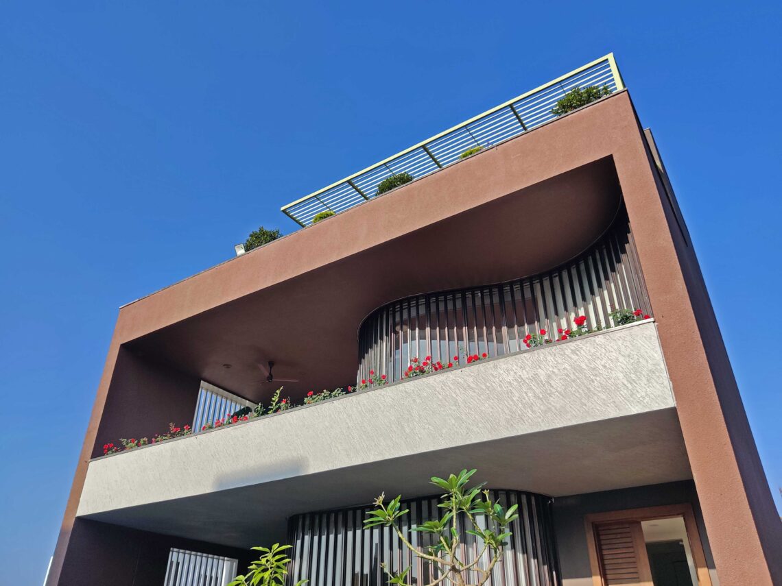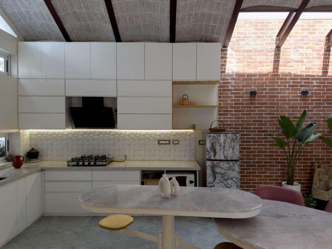 Residence situated in a gated community in vicinity of the reserved forest area of Ralamandal , the concept was to maximize on the east facing plot offering views of the hills from living spaces. A sloping double height jack vault roof adds character to the dining kitchen area and an open breezy plan with sunlight piercing through courtyards and skylights at all times enables a lifestyle among the natural elements.