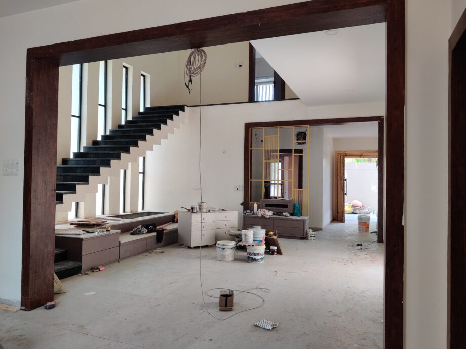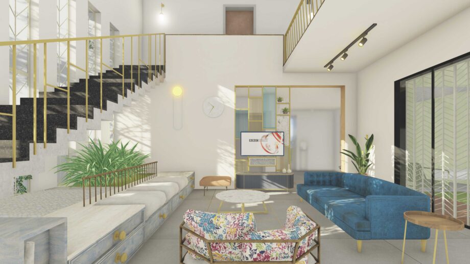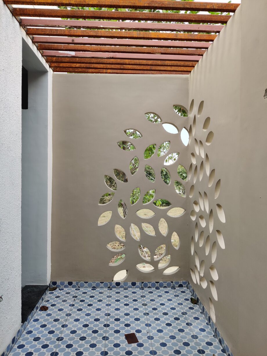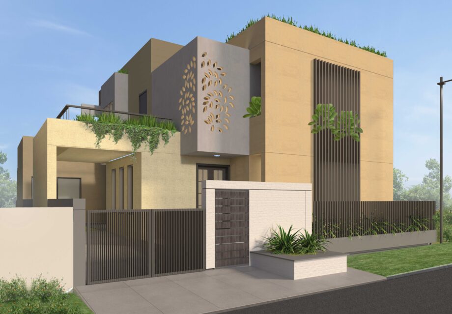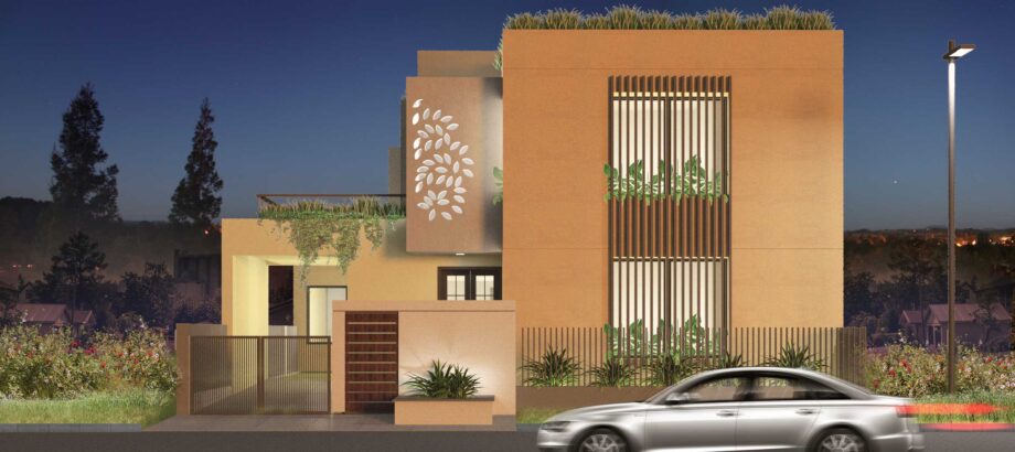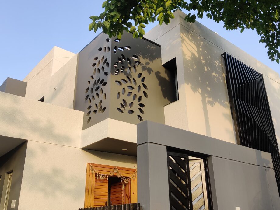 Vistara A residence situated in a gated community in the serene suburbs of Indore. use of Ferroconcrete walls to create the Jali Elements in elevation and designing with views opening towards gardens in each space !